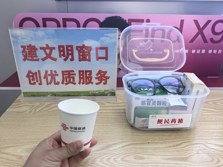 为落实群众办实事,营业厅隐形却重要的服务触点,打造了一系列便民微服务设施,让服务既有速度更有温度。针对老年群体、突发不适群众等特殊情况,营业厅在服务台旁专门设置了便民药箱,里面整齐摆放着感冒药、创可贴、碘伏等常用药品及急救用品,由专人定期检查更新,确保药品安全有效。