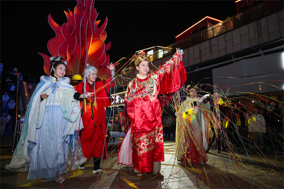 随着暮色渐浓,华灯初上,“马上许愿”心愿之神巡游盛大登场。六位NPC穿梭在人群中,市民通过诗词接龙等游戏参与互动,赢取精美纪念品。同时,街区下沉广场也热闹非凡,“马上歌唱”全民K歌、“马上跳舞”新年舞会吸引了大量市民参与其中,“马上相聚”电子篝火装置准时亮起,大家围着篝火载歌载舞,一边欣赏现场乐队、魔术、脱口秀等表演,一边畅享街区美食。不仅如此,当晚街区还有非遗火壶表演,这项传承百年的技艺在这里焕发出新的生命力。表演者通过抖动、旋转、抛接等动作,让木炭产生绚丽的火花,形成了“火树银花”的景象,在夜空中如同灿若星河,传递着祝福的美好寓意。主会场当晚19:00起每隔1小时整点抽出景区门票、餐饮体验券、数码产品等好礼。通过立体化沉浸式场景的营造,金陵STYLE的新年氛围感收获了市民游客的点赞。