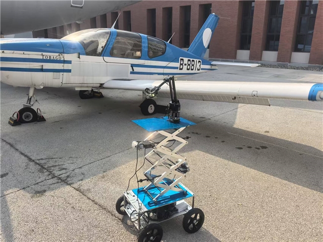 针对这些痛点,中飞院“云瞳巡翼”团队给出的不是“加一台相机”这么简单,而是一套面向实际运维流程的通用化思路:用自主设计与改装的无人小车承担贴近巡检与稳定采集,让“输入先稳下来”;再用针对真实工况打磨的工业视觉算法把“识别稳定性撑起来”;最后通过协同平台把结果记录、复核与研判“串成闭环”,让巡检从“经验活”走向“流程活”。这一方案的核心架构被概括为“小车—算法—系统”,即以无人小车采集画面为输入,以视距自适应、复杂天气识别等算法为处理基础,最终实现飞机蒙皮损伤识别、数据管理与协同研判的一体化输出。