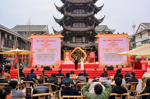 开肆仪式上,“鱼凫荐酒”情景剧不仅重现了鱼凫王“教民农耕、亦善酿酒”的传说,更重构了温江历史IP的当代表达。剧中,成特酒厂、丰收精酿、巨龙生物三家本土品牌代表化身“荐酒官”登台,将古蜀酒文化与当代酿造技艺巧妙连接,以民众喜闻乐见的方式,生动演绎了从传说到佳酿、从历史到产业的活态传承。