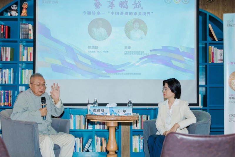 “艺+和谐社会”板块的5 场活动,构建起覆盖传统美 学、本土文脉、文学艺术的全域美育体系,其深层价值在于 通过艺术普及,培育城市的人文精神与审美品格。耶鲁大学 历史学博士、香港非物质文化遗产咨询委员会前主席郑培凯 在盐田区图书馆的“中国茶道的审美境界”讲座,并未局限 于茶艺技巧的传授,而是以茶道发展史为脉络,串联起陆羽《茶经》的哲学思想、宋徽宗“茶百戏”的雅致追求,更以“陆羽评名水” 的典故延伸至生态保护的当代议题,让“一 片叶子的文化之旅” 成为跨越千年的精神对话。