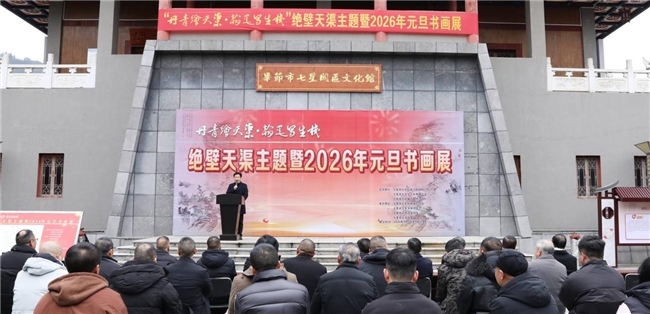 1 月 1 日,由七星关区生机镇人民政府、七星关区文学艺术界联合会、七星关区文化广电旅游局主办,七星关区美术家协会、七星关区书法家协会、七星关区文化馆、七星关区生机镇文艺协会承办的“丹青绘天渠、翰墨写生机”绝壁天渠主题暨 2026 年元旦书画展,于七星关区白鹭岛文学艺术创作交流中心隆重开幕。
