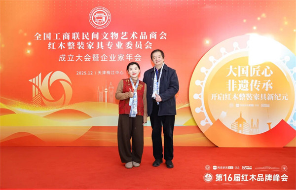 由全国工商联民间文物艺术品商会艺术红木整装家具专业委员会主办,网易新闻家居家具、品牌红木联合举办,并得到全国工商联民间文物艺术品商会、中国木材与木制品流通协会、中国收藏家协会、中国林产工业协会红木分会等四大权威机构支持的第16届红木家具品牌峰会在天津梅江中心隆重举行,同期举办2025CRF“红品奖”红木品牌盛典。