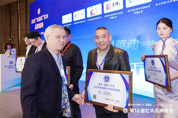 华厦·大不同斩获“2025红木家具十大受欢迎品牌”奖项