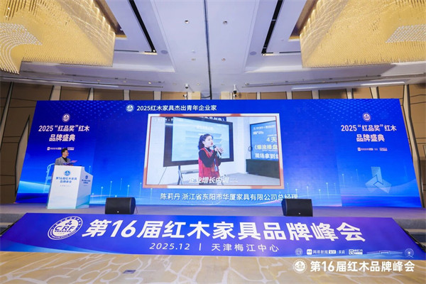 华厦·大不同总经理陈莉丹斩获“2025红木家具杰出青年企业家”的荣誉称号