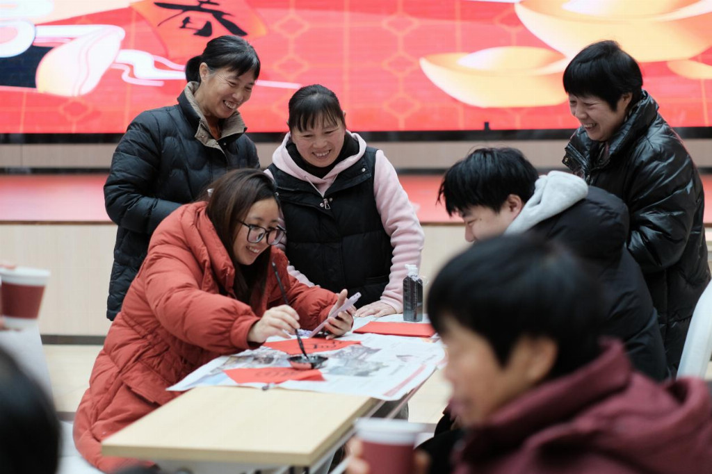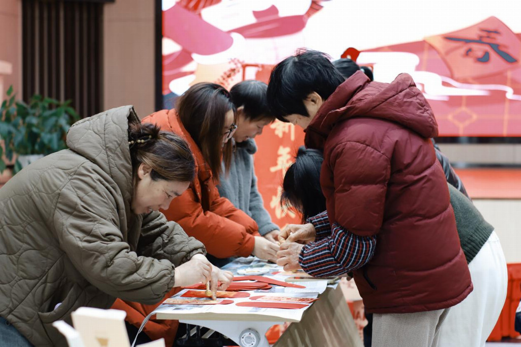 墨香满溢的写福字区前,书法爱好者挥毫泼墨、笔走龙蛇,一个个苍劲有力的“福”字跃然纸上。孩子们亦兴致勃勃地拿起毛笔,在家长的悉心指导下认真临摹,稚嫩笔触虽显笨拙,却饱含着最纯粹真挚的新年祝福。大家小心翼翼地收好写满心意的福字,计划贴于家中,为新年增添一抹喜庆祥和的中国红。