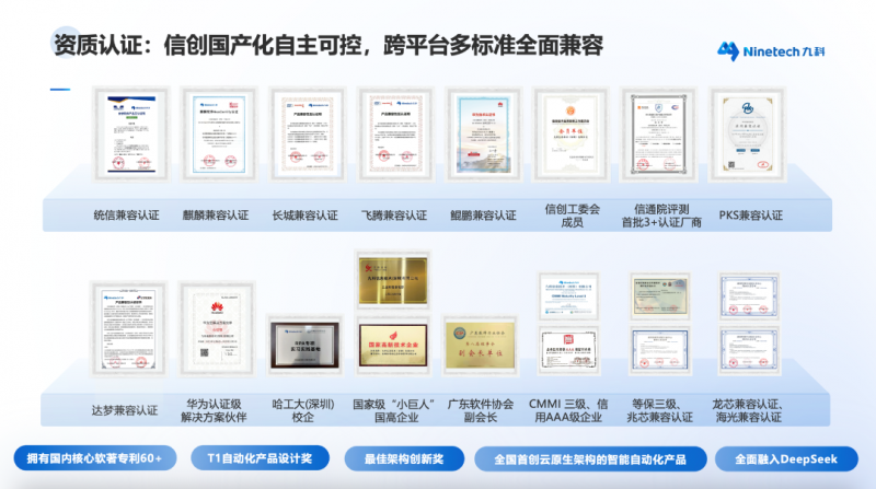 强大的研发投入最终转化为了实实在在的技术成果。如今,九科信息已累计获得覆盖多个关键技术领域的 近70项软件著作权及专利,被认定为 国家级专精特新“小巨人”企业,在央国企智能自动化赛道的市场占有率排名首位,超大型企业客户复购率超80%。