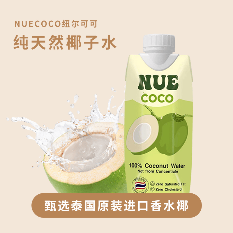 NUE COCO纽尔可可椰子水堪称天然补水神器,其原料源自泰国专属产区的香水椰——这一受泰国保护、不允许树苗出口的珍稀品种,赋予产品独一无二的口感与营养。配料表干净纯粹,仅含100%椰子水原汁,采用非浓缩还原工艺,无任何添加剂,完整保留椰子中的天然电解质与营养成分。得益于等渗性特质,能让身体快速恢复水分平衡,清甜口感中带着浓郁椰香与淡淡奶香,好喝又健康。为保证新鲜度,椰子采摘后24小时内即完成取水装瓶,采用独特利乐包锁鲜工艺,原装进口后仍能保持鲜椰水的纯正风味,让消费者随时畅享来自泰国的天然滋养。