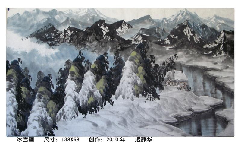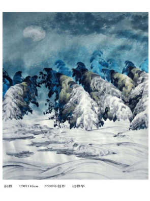 迟静华的艺术生涯,是一部不断突破、持续创新的历程。上世纪 80 年代,她参与创立冰雪画派,协助于志学构建冰雪山水画 “白色体系” 理论,其冰雪山水画打破了传统雪景绘画的单一性与地域性,大胆运用蓝、粉、红、绿等丰富色彩,让冰雪世界既有 “玉洁冰清” 的质感,又蕴含温暖灵动的生命力,成为冰雪画派的代表性作品之一。