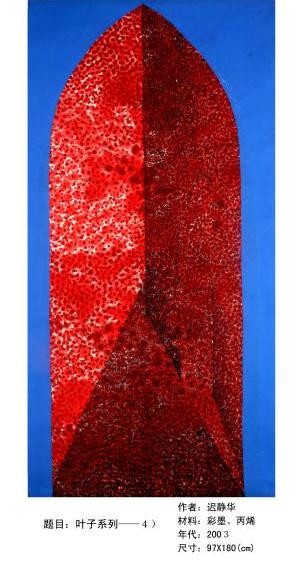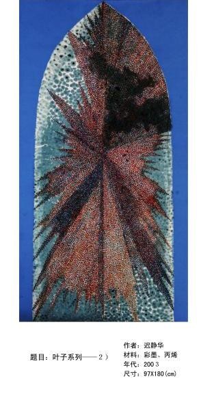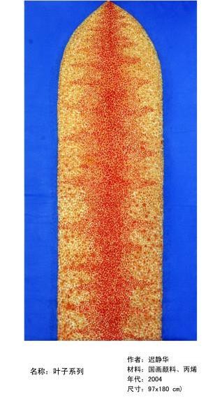 2000 年,一次仲秋时节的自然感悟,让她找到了艺术表达的核心符号 —— 叶子。 中国美术馆研究室副主任徐虹评价:“迟静华的树叶隐含了她个人的一段心路,舒展开朗的笔意中包含着难以捉摸的凄清婉约 —— 那是她心灵中的秋之树叶。”