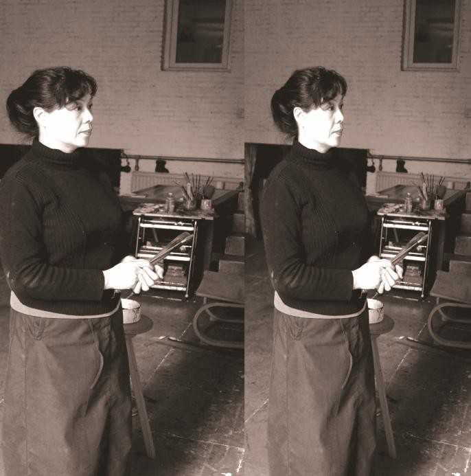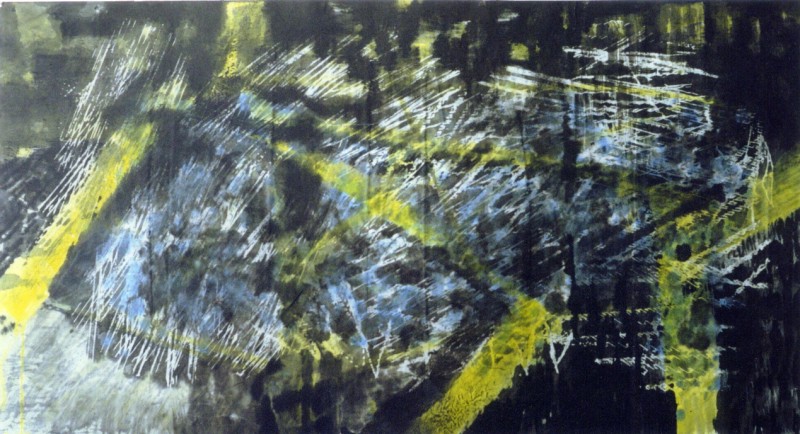 迟静华的艺术创作,始终与生命体验紧密相连,每一系列作品都承载着她对生活、自然与宇宙的深刻感悟。1985年跟随冰雪画家于志学学习绘画,当代著名的实力派画家,同于志学共同创建冰雪画派。 1990 年,迟静华进入中央美术学院进修,系统的专业训练让她的创作迎来质的飞跃。但她并未局限于传统国画的笔墨程式,而是开始探索属于自己的艺术语言。“我常常以一种无知无畏的心态对待画面,什么样的工具和材料都想法去试一下,全然不管效果如何。”人民美术出版社美术之友执行编辑李果采访:“ 她打破毛笔创作的常规,用麻绳、铁丝、洗衣粉、盐粒等材料进行实验,通过印、拓、撒、甩等技法,让画面产生独特的肌理效果。”这种创作方式,恰是她对生命本真状态的追求。