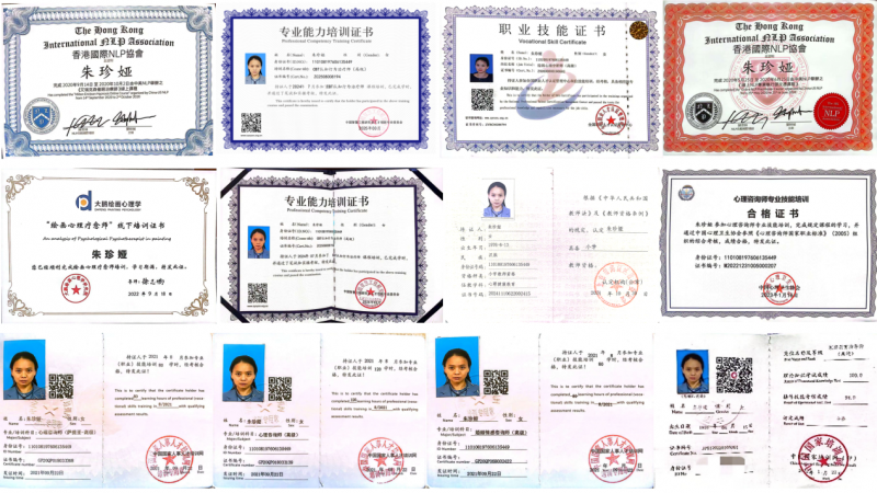 多年来,她始终保持“在学习中实践,在实践中精进”的节奏,累计考取了CBT认知行为疗法讲师、绘画心理分析与疗愈师讲师、高级心理咨询师、高级家庭教育指导师、艾瑞克森催眠师、婚姻情感咨询师等多项专业证书。