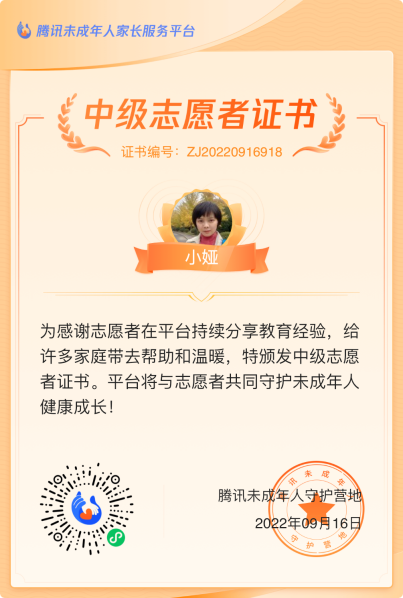 为了这个梦想,她始终践行“公益先行”的理念。作为腾讯未成年人家长服务平台的中级志愿者,她持续在平台分享教育经验,为万千家庭带去温暖;她常年开展公益直播,尤其关注学校师生的心理健康,免费为孩子们提供心理讲座;她坚持日捐、月捐公益平台,用“随时随地助人”的行动,传递着“用生命影响生命”的信念。