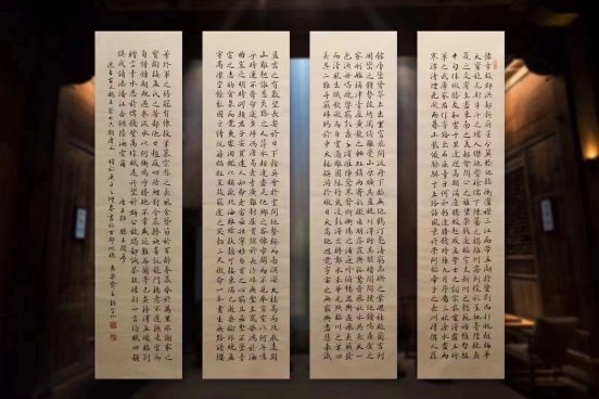 二〇二四年初,与西冷印社金石篆刻家费名瑶先生,联合创作金石《道德经》巨篇和楷书《赤壁怀古》、行书《陋室铭》、草书《观沧海》石刻。