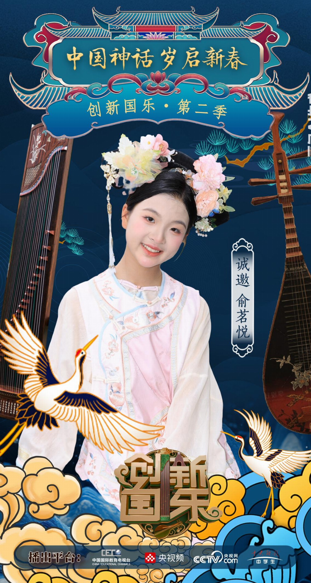 为持续推动中华优秀传统文化的创造性转化与创新性发展,打造具有时代气息的国乐精品,创新国乐第二季“中国神话 岁启新春”大型原创国乐盛典2026年2月8日在北京首钢园隆重启幕!在此,我们特别向学员俞茗悦发出正式演出邀请,期待她以更加成熟的技艺与表现力,与我们共同演绎华夏神话的壮丽诗篇。