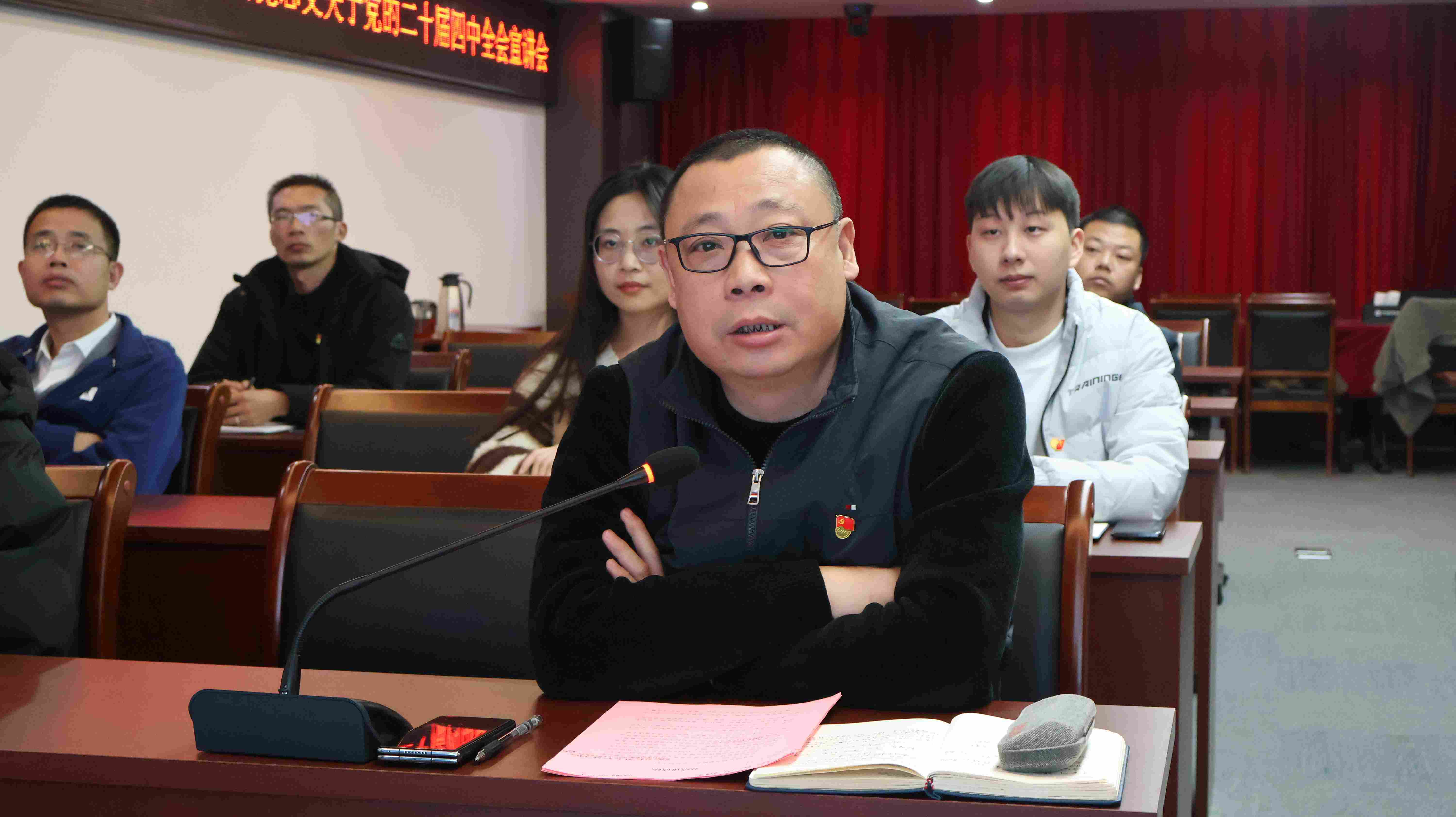 瓮翔宇副校长的宣讲既立足全会精神的理论高度,又结合建筑行业发展、企业经营实际,用通俗语言将政策要点转化为企业发展的“方向指引”,引发参会人员的强烈共鸣。