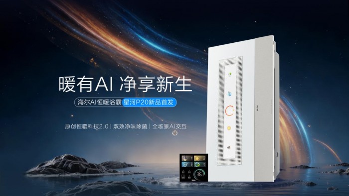 在浴室取暖设备市场竞争日趋激烈的当下,星河P20凭借原创核心技术脱颖而出。产品搭载海尔原创AI恒暖系统2.0,以AI科技全链路赋能制暖、净味除菌、无感交互等全场景,结合自主研发的全时温度巡航技术、AI智能自驱动技术与AI节能技术三大核心科技,打破传统浴霸技术瓶颈,真正实现精确制暖、精准控温、全时全域恒暖与节能省电的完美结合。作为AI浴室空气管理专家,星河P20不仅是一款取暖设备,更是集多种智慧功能于一体的浴室空间解决方案,推动行业向“AI智能+舒适体验”的高端化方向升级。