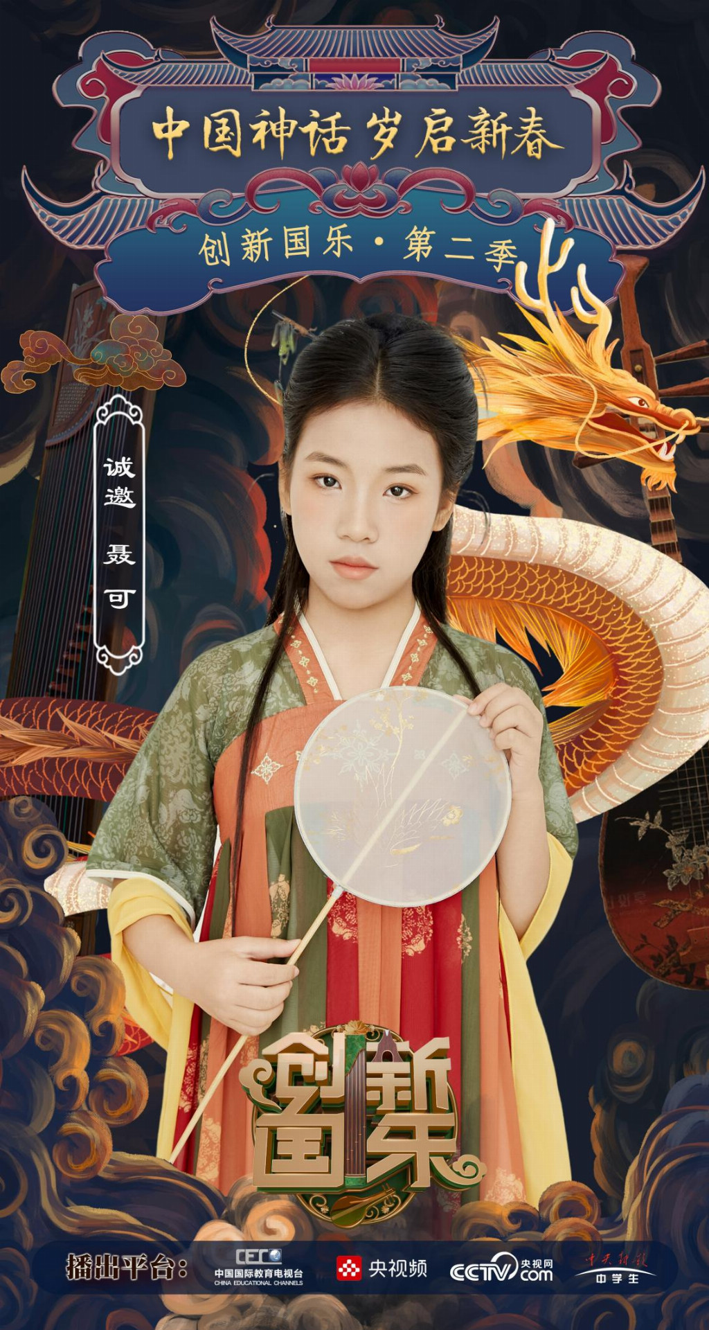 为持续推动中华优秀传统文化的创造性转化与创新性发展,打造具有时代气息的国乐精品,创新国乐第二季“中国神话 岁启新春”大型原创国乐盛典2026年2月8日在北京首钢园隆重启幕!在此,我们特别向学员聂可发出正式演出邀请,期待她以更加成熟的技艺与表现力,与我们共同演绎华夏神话的壮丽诗篇。