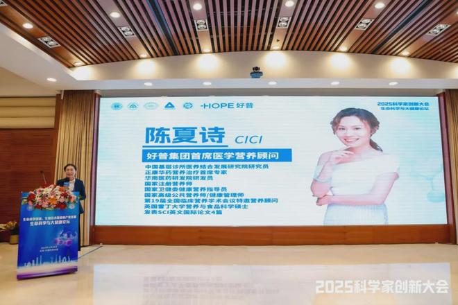 好普集团首席医学营养顾问陈夏诗CICI(中国基层诊所医养结合发展研究院研究员、正康华药营养治疗首席专家、华南医药研发院研发员、国家注册营养师、国家卫健委健康营养指导员、国家高级公共营养师/健康管理师、第19届全国临床营养学术会议特邀营养顾问、英国雷丁大学营养与食品科学硕士、发表SCI英文国际论文4篇)受邀登台,发表题为《营养新趋势:好普集团生态型创新科技与精准健康解决方案》的主题分享,凭借扎实的学术积淀与丰富的实践经验,引发全场与会者的广泛关注与热烈共鸣。