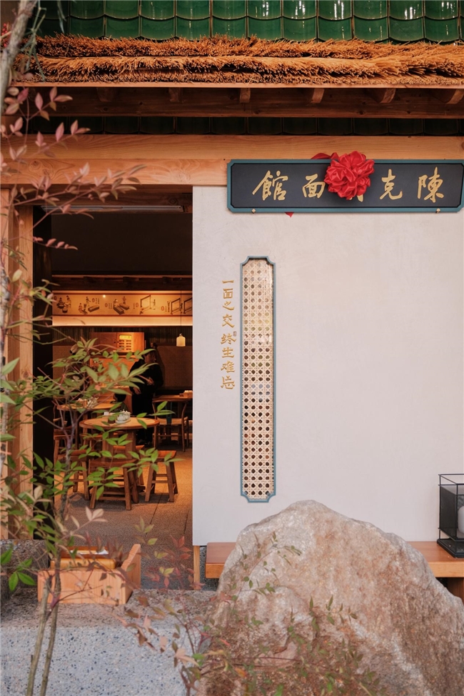 在空间设计上,面馆选用木、麻、竹、石等自然材质,搭配米白、淡褐、墨绿的色彩体系,营造出温润、静谧、富有呼吸感的东方氛围。