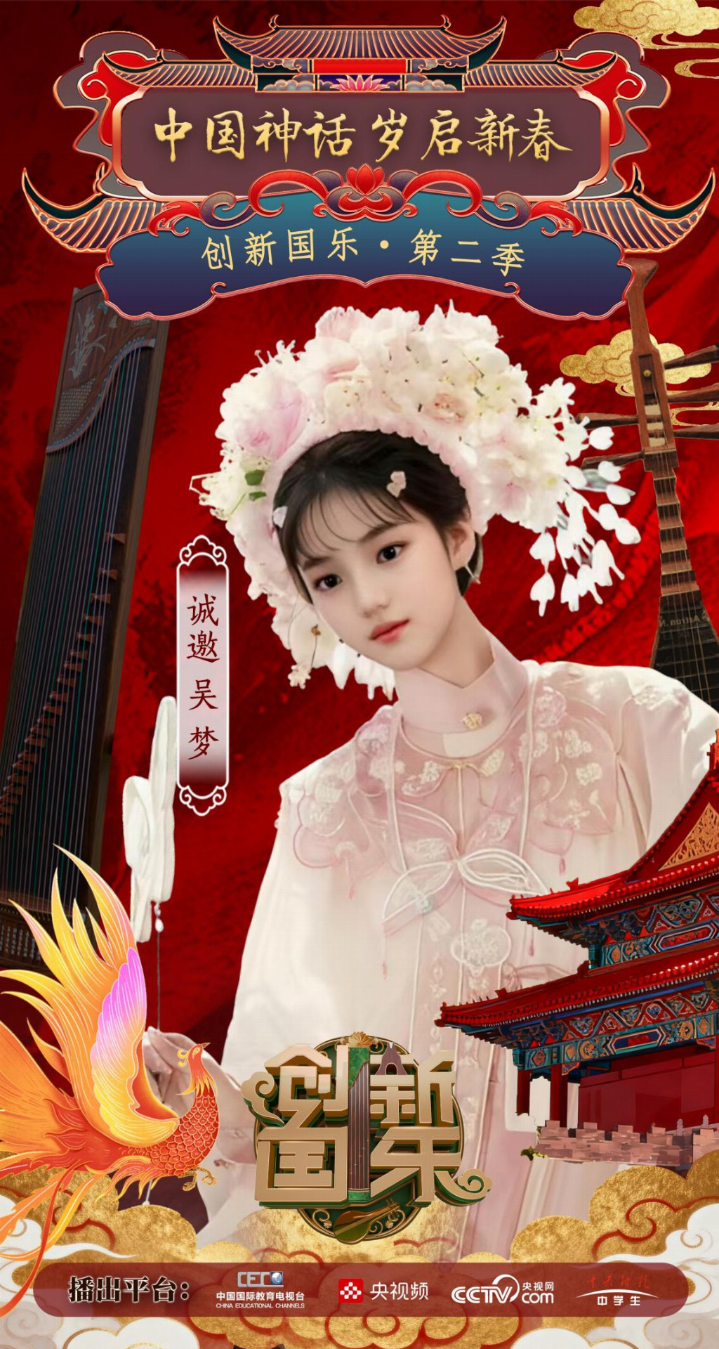 为持续推动中华优秀传统文化的创造性转化与创新性发展,打造具有时代气息的国乐精品,创新国乐第二季“中国神话 岁启新春”大型原创国乐盛典2026年2月8日在北京首钢园隆重启幕!在此,我们特别向学员吴梦发出正式演出邀请,期待她以更加成熟的技艺与表现力,与我们共同演绎华夏神话的壮丽诗篇。