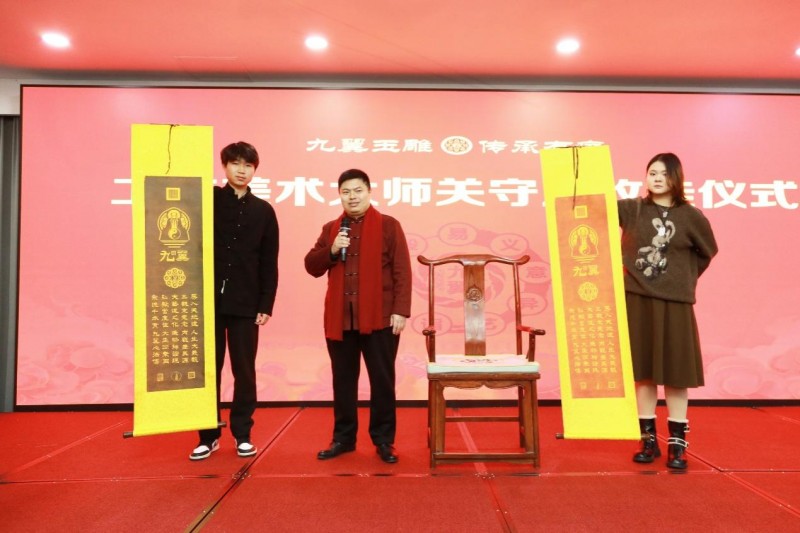 仪式在庄重的文化氛围中圆满落幕,既延续了传统工艺美术"师徒相授"的传承精髓,又彰显了九翼学派"古今交融"的时代特质。随着青年一代传承人的加入,中华玉道文化将在国学智慧的滋养与创新思维的驱动下,为民族文化复兴注入更为鲜活的力量。