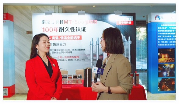 黄总在报告中详细回顾了曼卡特从材料研发到系统集成的技术发展历程,重点介绍了公司在高端锚固材料国产化替代过程中的突破性实践。其中,南京曼卡特自主研发的MT - 500百年设计使用年限植筋胶与合金钢耐疲劳锚栓系统成为亮点。该系统凭借严苛的耐久性验证脱颖而出,成功通过湿热老化、冻融循环、盐雾腐蚀、化学侵蚀及长期荷载作用等多重极端环境考验,各项性能指标全面满足《GB50728 - 2011》《JGJ145》等国家最高安全等级标准要求,真正实现了“一次安装、百年可靠”的工程目标。截至目前,该锚固系统已在珠海TJ二标隧道、苏州地铁工程、浙江三澳核电站等多个国家级标志性工程中成功应用,显著提升了工程结构连接部位的安全冗余与服役寿命,为重大工程的长期安全稳定运行提供了坚实保障。
