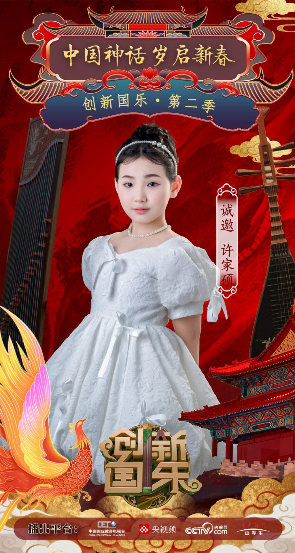 为持续推动中华优秀传统文化的创造性转化与创新性发展,打造具有时代气息的国乐精品,创新国乐第二季“中国神话 岁启新春”大型原创国乐盛典2026年2月8日在北京首钢园隆重启幕!在此,我们特别向学员许家硕发出正式演出邀请,期待她以更加成熟的技艺与表现力,与我们共同演绎华夏神话的壮丽诗篇。