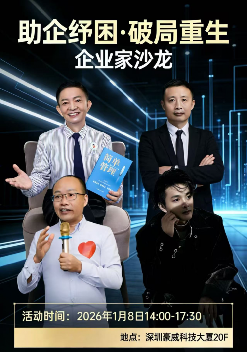 岁末年初,企业如何破解经营困局、抢抓发展新机?记者从活动主办方获悉,第四期「助企纾困·破局重生」企业家沙龙将于1月8日(周四)下午在深圳启幕。本次沙龙以“聚智汇力、共破困局”为核心,汇聚管理、法律、资本、新媒体等多领域权威专家,为企业家搭建高端交流与资源对接平台,助力企业在变局中突围、向新而行。