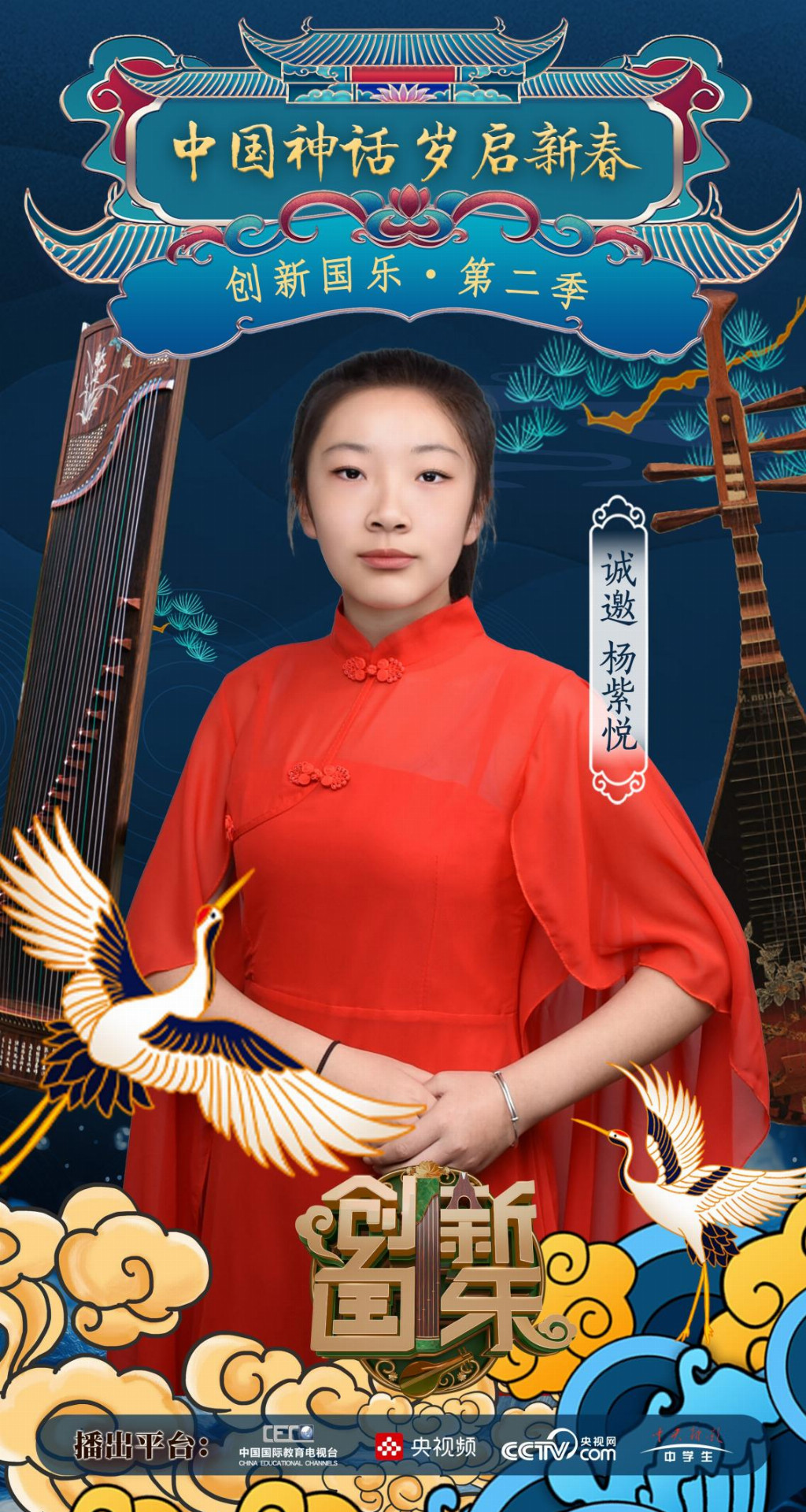 为持续推动中华优秀传统文化的创造性转化与创新性发展,打造具有时代气息的国乐精品,创新国乐第二季“中国神话 岁启新春”大型原创国乐盛典2026年2月8日在北京首钢园隆重启幕!在此,我们特别向学员杨紫悦发出正式演出邀请,期待她以更加成熟的技艺与表现力,与我们共同演绎华夏神话的壮丽诗篇。
