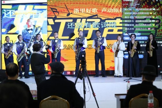 著名音乐人壮子,温州名嘴胡温柔老师担任主持,音乐厅内座无虚席,观众们热情似火,满怀憧憬地共同迎接这场寄托着温州文化未来的新年献礼,演出伊始,天籁萨克斯艺术中心的负责人章京晶老师率领周建华,王献尧等15位演奏者闪亮登场,带来《我爱你中国》《鸽子》两首经典曲目的精彩演奏。他们凭借精湛的表演技艺,为观众们打造了一场无与伦比的听觉盛宴。乐声时而如潺潺溪流,深情婉转;时而如激昂战鼓,高亢嘹亮,赢得了现场观众的阵阵掌声与喝彩。