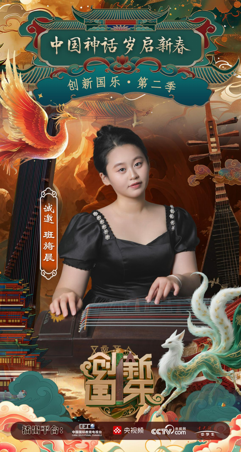 为持续推动中华优秀传统文化的创造性转化与创新性发展,打造具有时代气息的国乐精品,创新国乐第二季“中国神话 岁启新春”大型原创国乐盛典2026年2月8日在北京首钢园隆重启幕!在此,我们特别向学员班旖晨发出正式演出邀请,期待她以更加成熟的技艺与表现力,与我们共同演绎华夏神话的壮丽诗篇。