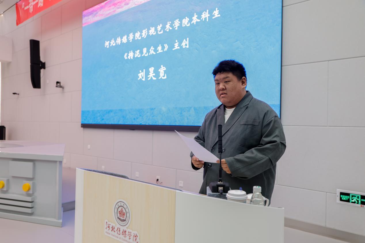 河北传媒学院影视艺术学院本科生、《抟泥见众生》主创刘昊宽分享了创作心得。他通过实地走访,运用细腻的镜头语言真实记录非遗传承人与泥土对话的匠心底色。刘昊宽认为,非遗不仅是古老的技艺,更是流动的生命力。他表示,作为Z世代传媒学子,应深入挖掘文化根脉,用具有温度的专业视角,在数智时代讲好“活着”的非遗故事。