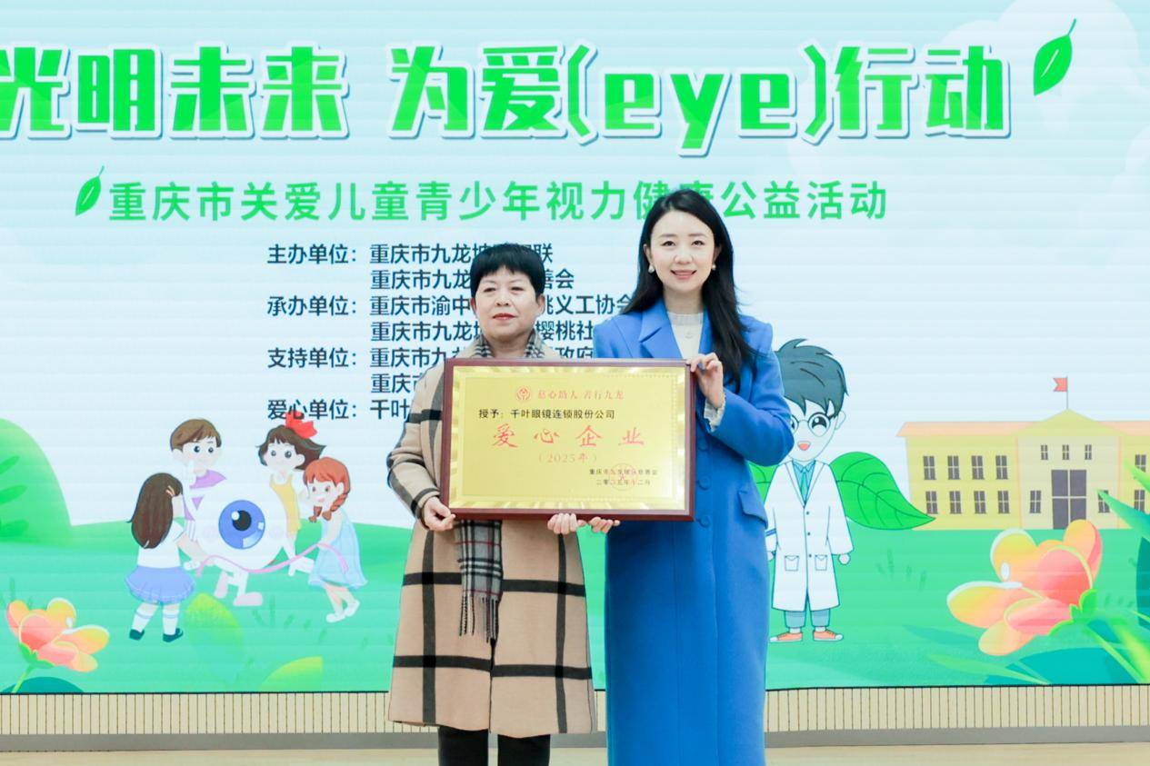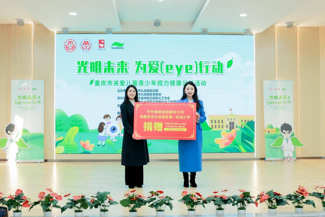 本次收官仪式由重庆市九龙坡区妇女联合会、重庆市九龙坡区慈善会联合主办,重庆市渝中区红樱桃义工协会承办,爱心企业千叶眼镜连锁股份公司全程提供支持。活动在孩子们清澈的合唱声中拉开帷幕,展现了儿童青少年蓬勃向上的精神风貌。仪式上,千叶眼镜向九龙坡区第一实验小学捐赠学习用具500套、眼镜50副,以实际行动助力学子清晰视物、畅游学海,守护他们的明亮“视”界。