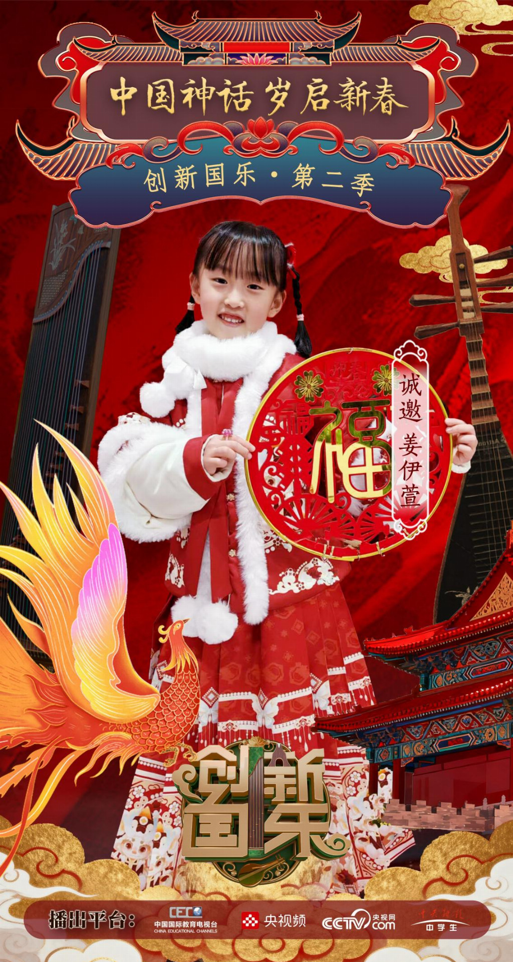 为持续推动中华优秀传统文化的创造性转化与创新性发展,打造具有时代气息的国乐精品,创新国乐第二季“中国神话 岁启新春”大型原创国乐盛典2026年2月8日在北京首钢园隆重启幕!在此,我们特别向学员姜伊萱发出正式演出邀请,期待她以更加成熟的技艺与表现力,与我们共同演绎华夏神话的壮丽诗篇。