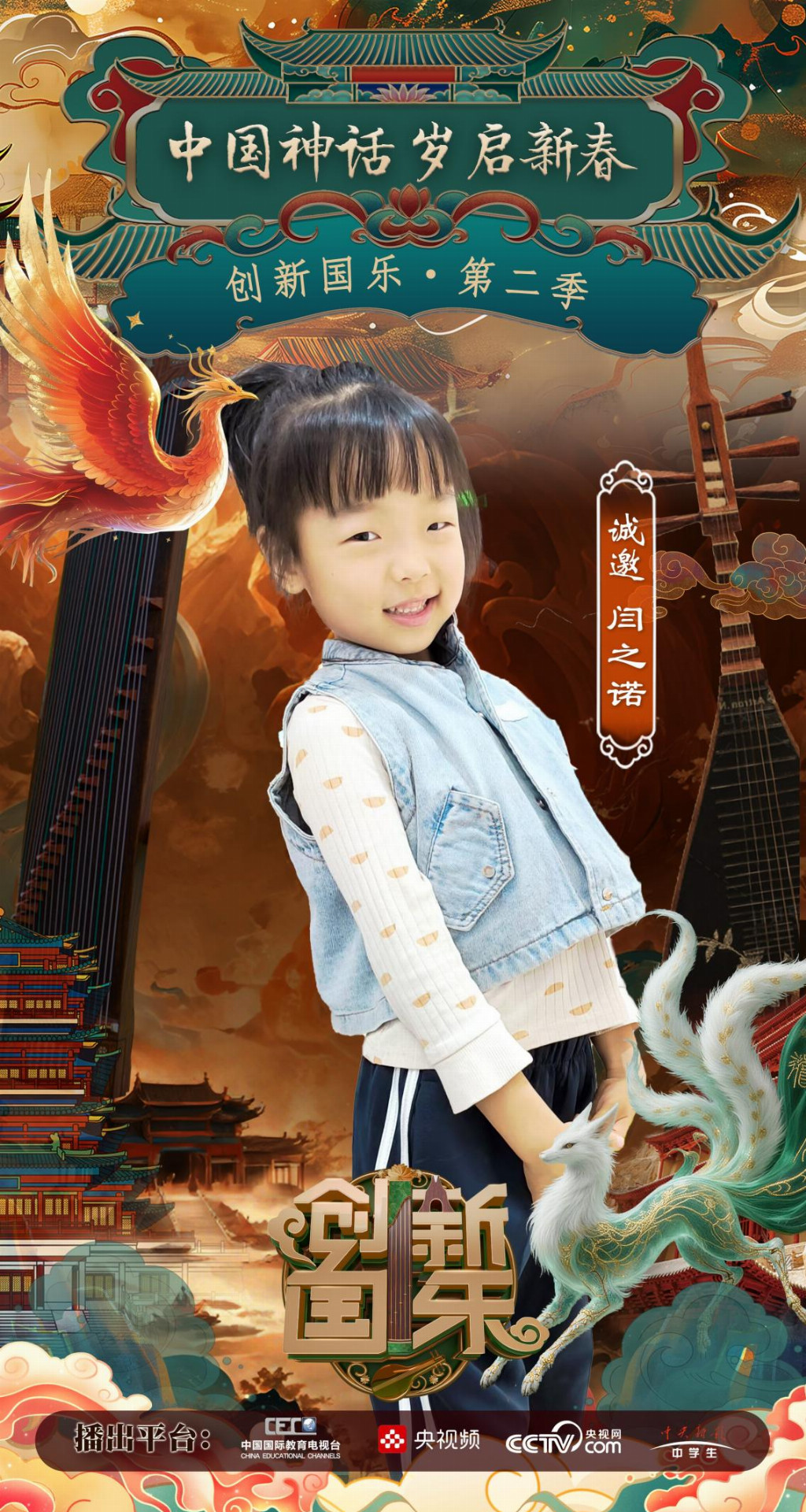 为持续推动中华优秀传统文化的创造性转化与创新性发展,打造具有时代气息的国乐精品,创新国乐第二季“中国神话 岁启新春”大型原创国乐盛典2026年2月8日在北京首钢园隆重启幕!在此,我们特别向学员闫之诺发出正式演出邀请,期待她以更加成熟的技艺与表现力,与我们共同演绎华夏神话的壮丽诗篇。