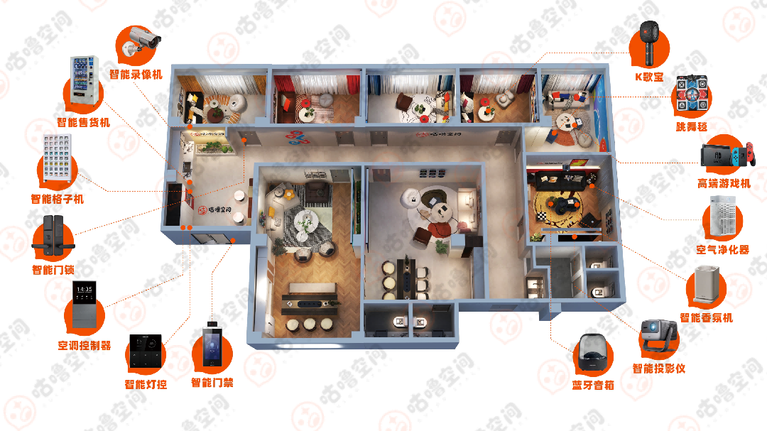然而,早期的自助空间模式(如无人自习室、自助棋牌室),于消费者而言存在私密性差、时段固定等局限;于经营者而言则面临盈利天花板低、同质化内卷、运营成本高等风险。咕噜空间以“时间切片+空间复用”模式,通过24小时AI自助运营,实现存量资产的高效利用,成为破解行业痛点的创新解决方案。