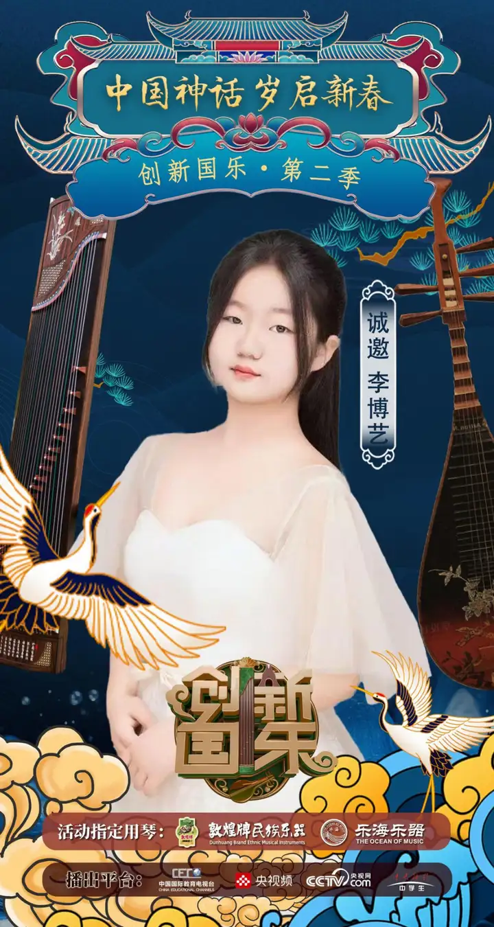 为持续推动中华优秀传统文化的创造性转化与创新性发展,打造具有时代气息的国乐精品,创新国乐第二季“中国神话 岁启新春”大型原创国乐盛典2026年2月8日在北京首钢园隆重启幕!在此,我们特别向学员李博艺发出正式演出邀请,期待她以更加成熟的技艺与表现力,与我们共同演绎华夏神话的壮丽诗篇。