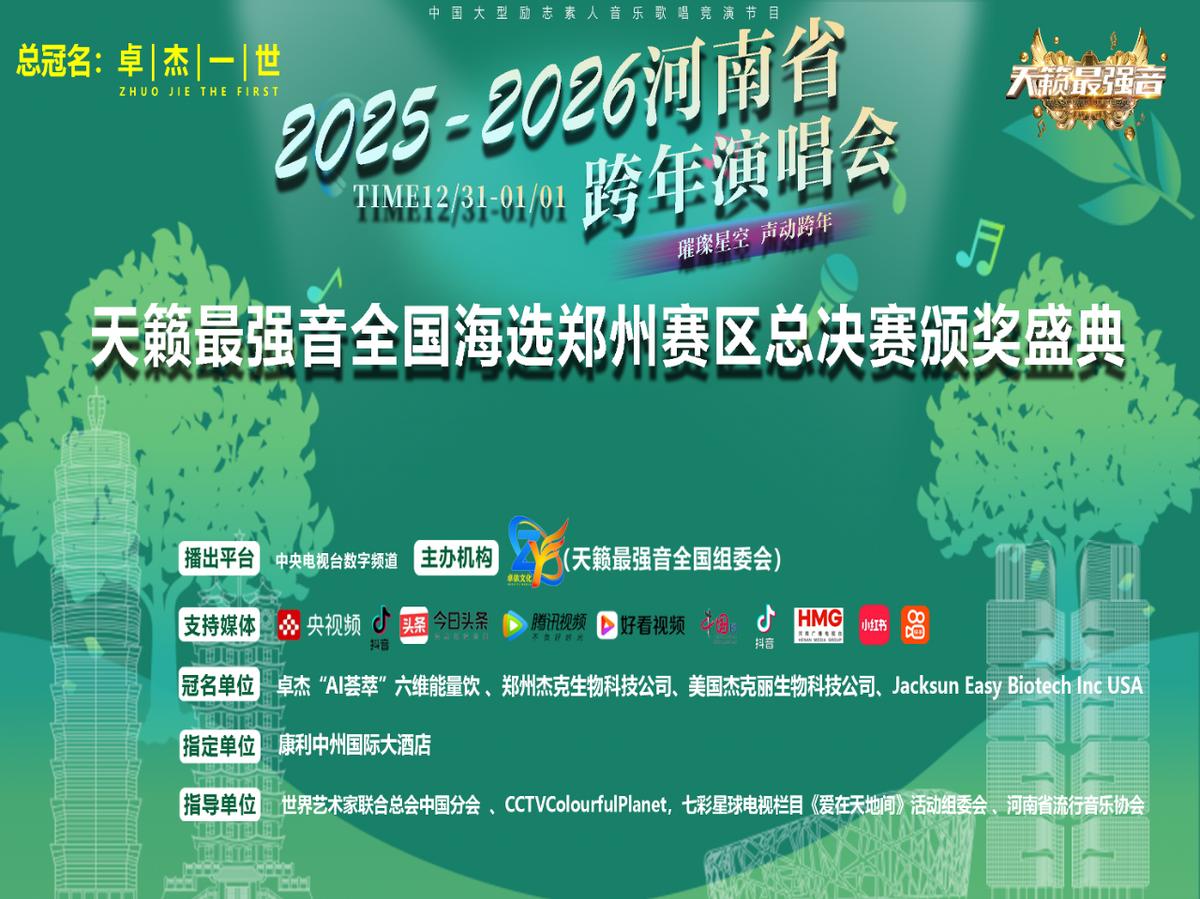 2025年12月31日晚,由河南卓依文化传播有限公司主办的中央电视台数字频道播出的《天籁最强音》郑州赛区总决赛颁奖盛典,在郑州市汇艺剧院圆满落幕。