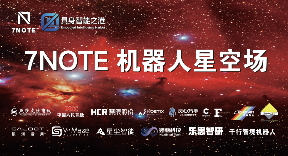 7NOTE机器人星空场在首旅集团、王府井集团、燕莎友谊商城的支持下将这场星空盛会完美呈现;在中国人保集团、慧辰股份、具身智能之港的助力和支持下,呈现第一期加入7NOTE机器人星空场的品牌———松延动力、灵心巧手、星尘智能、Freshcube、翌脑科技、智元、