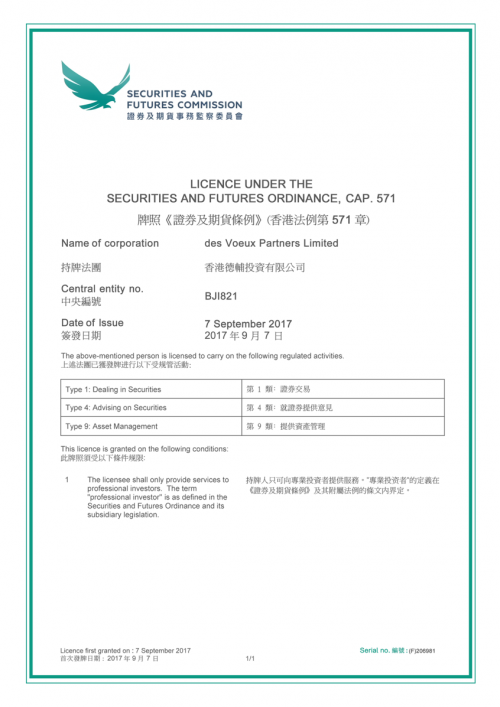 香港德辅投资有限公司(des Voeux Partners Limited)正式纳入香港证监会持牌法团体系,不仅是公司发展历程中的一个重要节点,也反映出国际资产管理行业正在回归合规、结构与长期价值的本源。