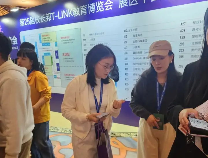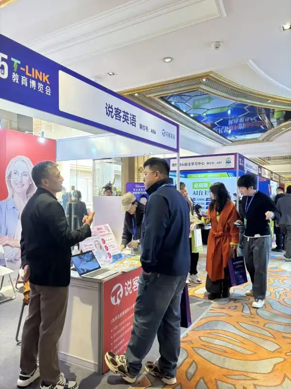 展会现场人头攒动、热潮涌动,说客英语位于A06的展位凭借鲜明的品牌视觉、与优质的教育理念,成为全场焦点之一,吸引了大批教育从业者、意向合作伙伴及英语学习者驻足围观、咨询交流。