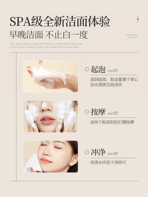 正确使用方法也很关键:第一步先洗手,避免手上的细菌污染面部;第二步取适量洁面,搭配起泡网打出绵密泡沫(懒人必备起泡网,泡沫更细腻);第三步将泡沫厚敷在脸上,隔着泡沫轻轻搓揉,出油多的部位可多按摩几下;第四步用清水冲洗干净;第五步可再取少量泡沫在T区按压不超过30秒,深层清洁毛孔内的污垢;最后冲洗干净即可进行后续护肤。