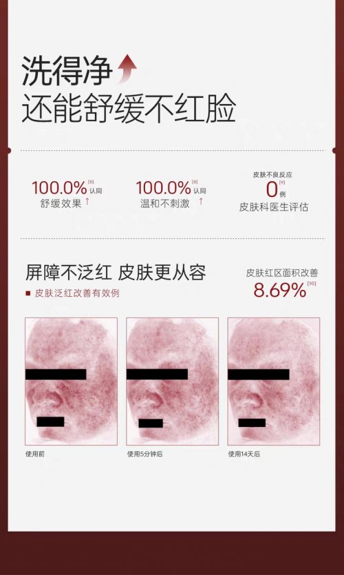 关于早晚使用是否过度:四重氨基酸表活+三重舒缓修复成分的组合,决定了它的温和属性,早晚使用完全不会损伤皮肤屏障,干皮用后也不会拔干起皮;