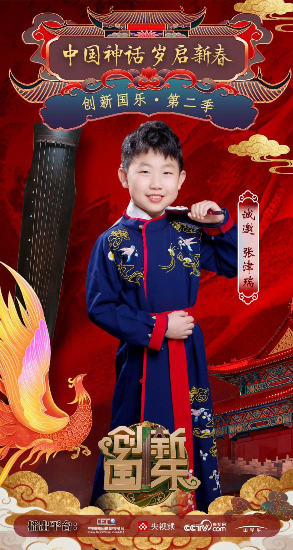 为持续推动中华优秀传统文化的创造性转化与创新性发展,打造具有时代气息的国乐精品,创新国乐第二季“中国神话 岁启新春”大型原创国乐盛典2026年2月8日在北京首钢园隆重启幕!在此,我们特别向张津瑞发出正式演出邀请,期待他以更加成熟的技艺与表现力,与我们共同演绎华夏神话的壮丽诗篇。