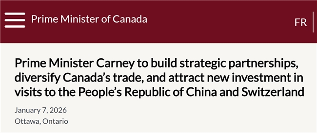 当前的世界经贸态势在关税战的冲击下,复杂而严峻,充满了不确定性。作为传统的贸易大国,加拿大必须作出与时俱进的战略选择和锚定。近期,加拿大总理马克·卡尼宣布将于1月13–17日访问中国,这是加拿大总理时隔近十年再次访华,凸显两国关系在经历摩擦与调整之后正迈向新的合作阶段。此行的重点之一,是在贸易、能源、农业和投资领域深化合作,同时推动加拿大非美出口增长。