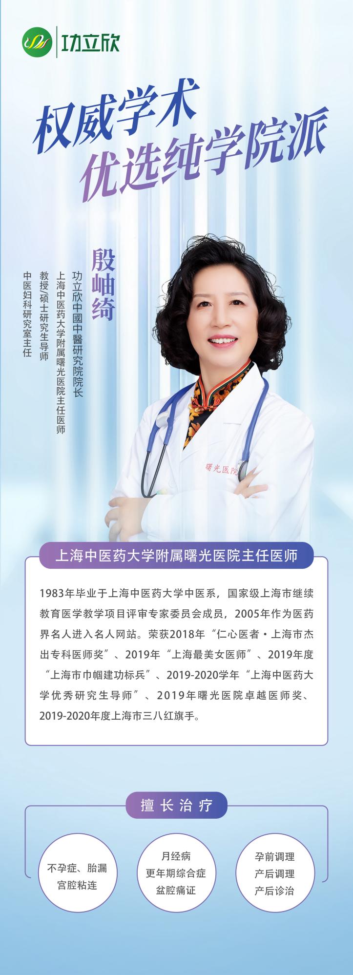 此外,殷岫绮教授还担任中华中医药学会妇科分会常务委员、长三角妇科流派联盟委员会委员等诸多学术职务,荣获“上海最美女医师”“上海市巾帼建功标兵”等多项荣誉,是中医妇科业界泰斗。