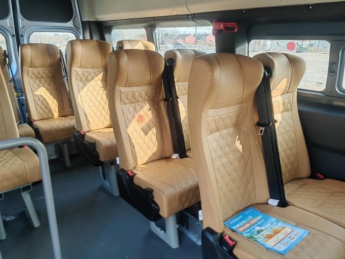 车内采用乘用化智能座舱设计,配备仿皮独立座椅,布局灵活,手动滑移门、自动空调、充电接口杯托等配置应有尽有。在提供舒适乘坐体验的同时,极大提升了上下客效率与空间灵活性,确保在服务核心工业园、居民住宅区等核心片区时,实现“高效率直达”与“高品质服务”的完美统一。