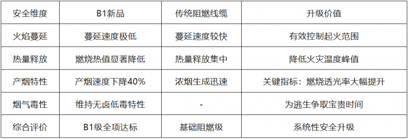 简单来说,当火情发生时,B1级线缆不仅更难点燃、更难蔓延,更重要的是——产烟更少、烟气更透明、毒性更低,为人员疏散和消防救援创造了至关重要的安全窗口。