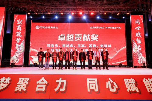 其中,河南省人民法院原副院长、豫宛商会创始会长张玉坤获终身成就奖,河南省政府原副秘书长、豫宛商会第二任会长曹国营与现任会长高鹏获评功勋人物,程志杰、戴志刚等优秀代表分别斩获各类奖项。河南省高级人民法院原院长张立勇、原河南省省长助理孙泉砀等领导担任颁奖嘉宾,为获奖代表现场授奖,台下掌声雷动,向榜样致敬、向奋斗喝彩。